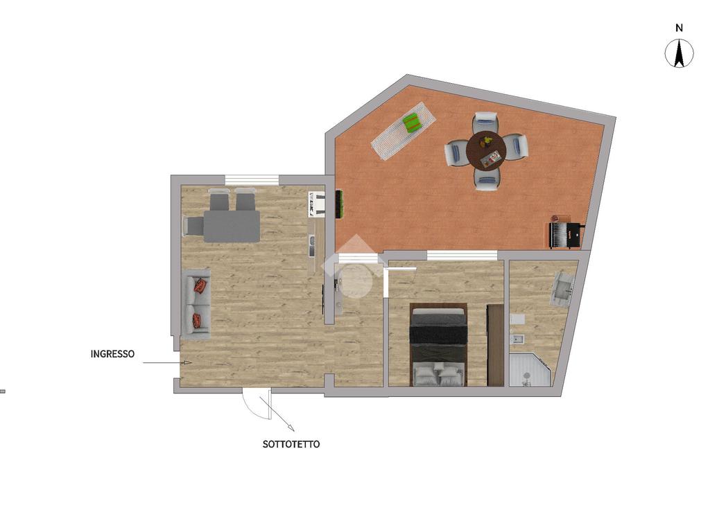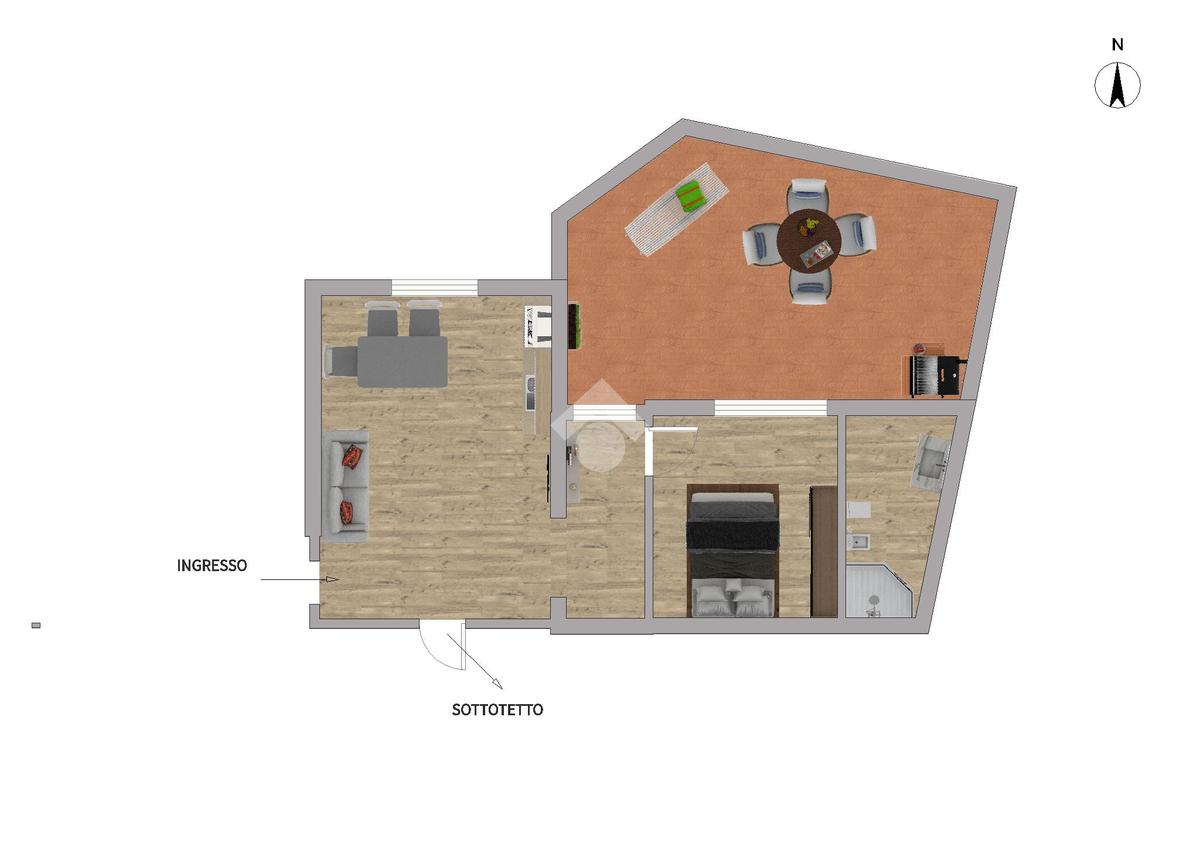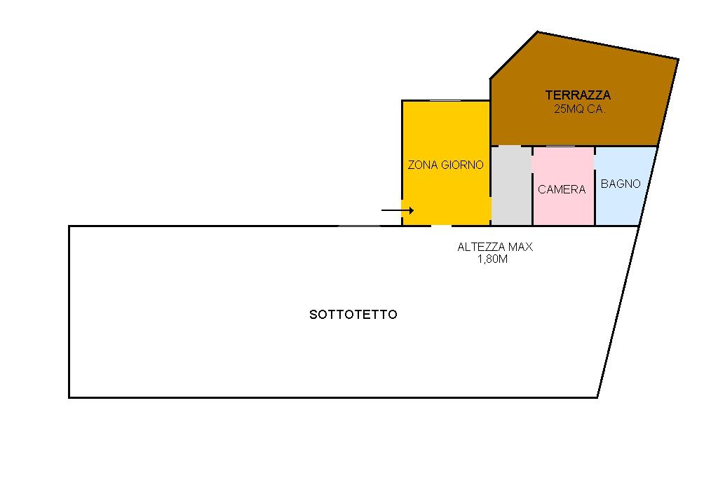 Dalla zona giorno si ha inoltre accesso ad un ampio spazio sottotetto, con altezza max 1,80m, sfruttabile come ripostiglio/lavanderia.