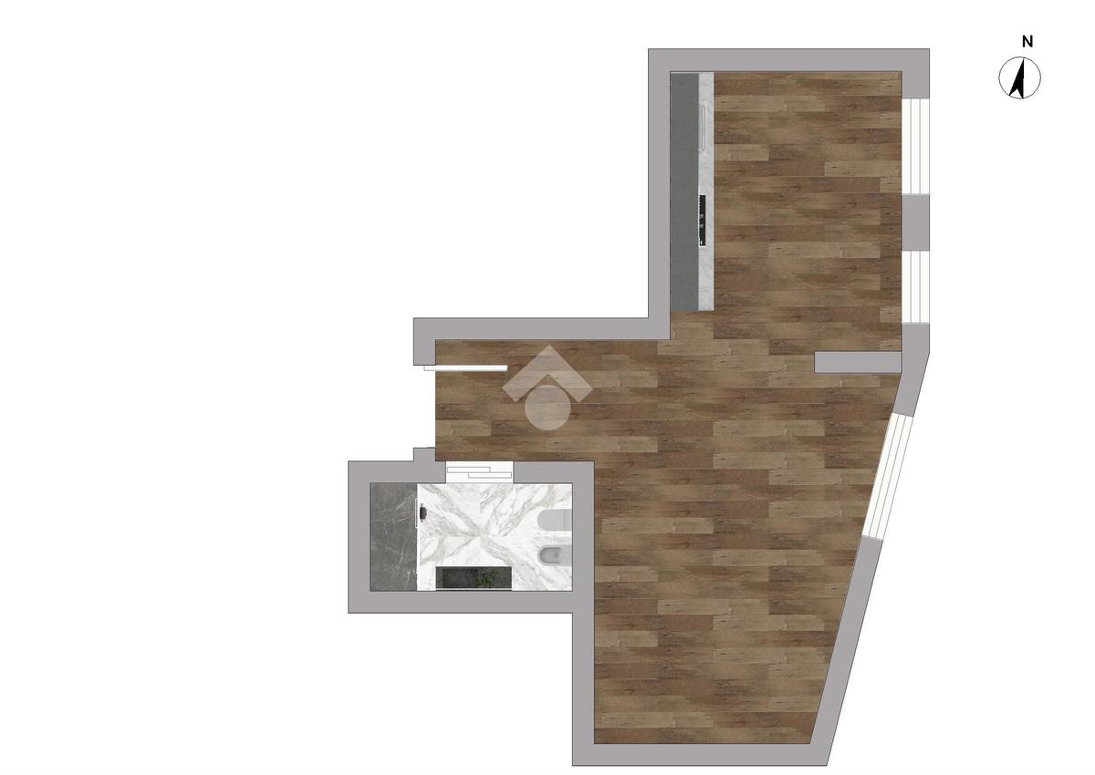 L'immobile, frutto di frazionamento del 2008, si presenta in buone condizioni ed è composto da un unico vano dotato di tre finestre, oltre ad un servizio con doccia.