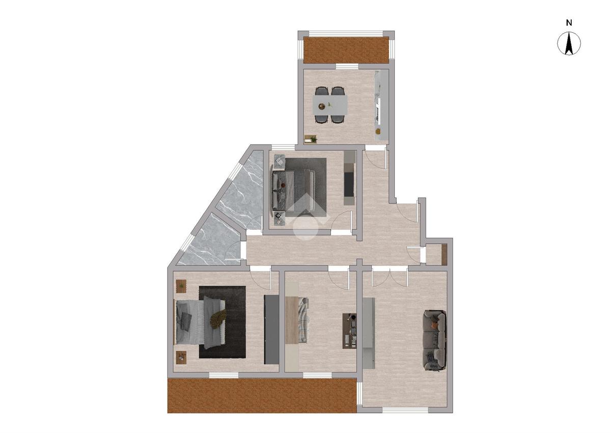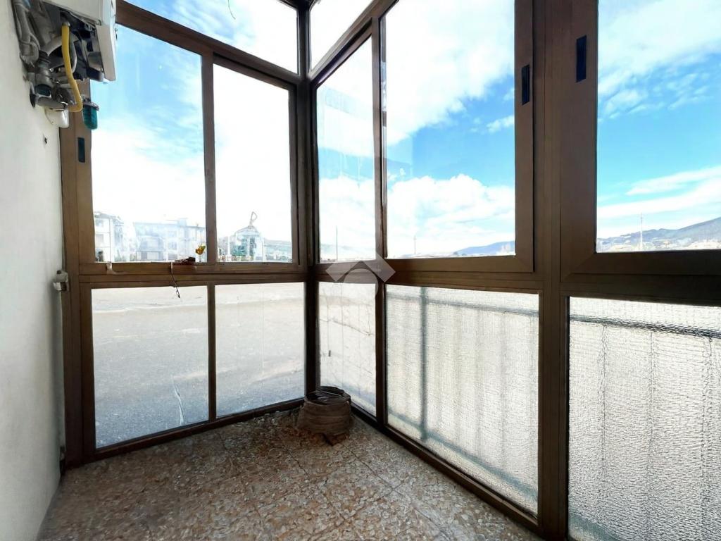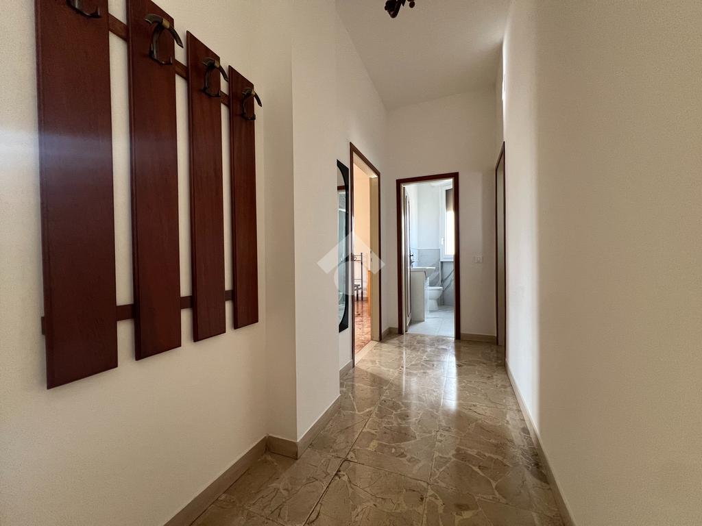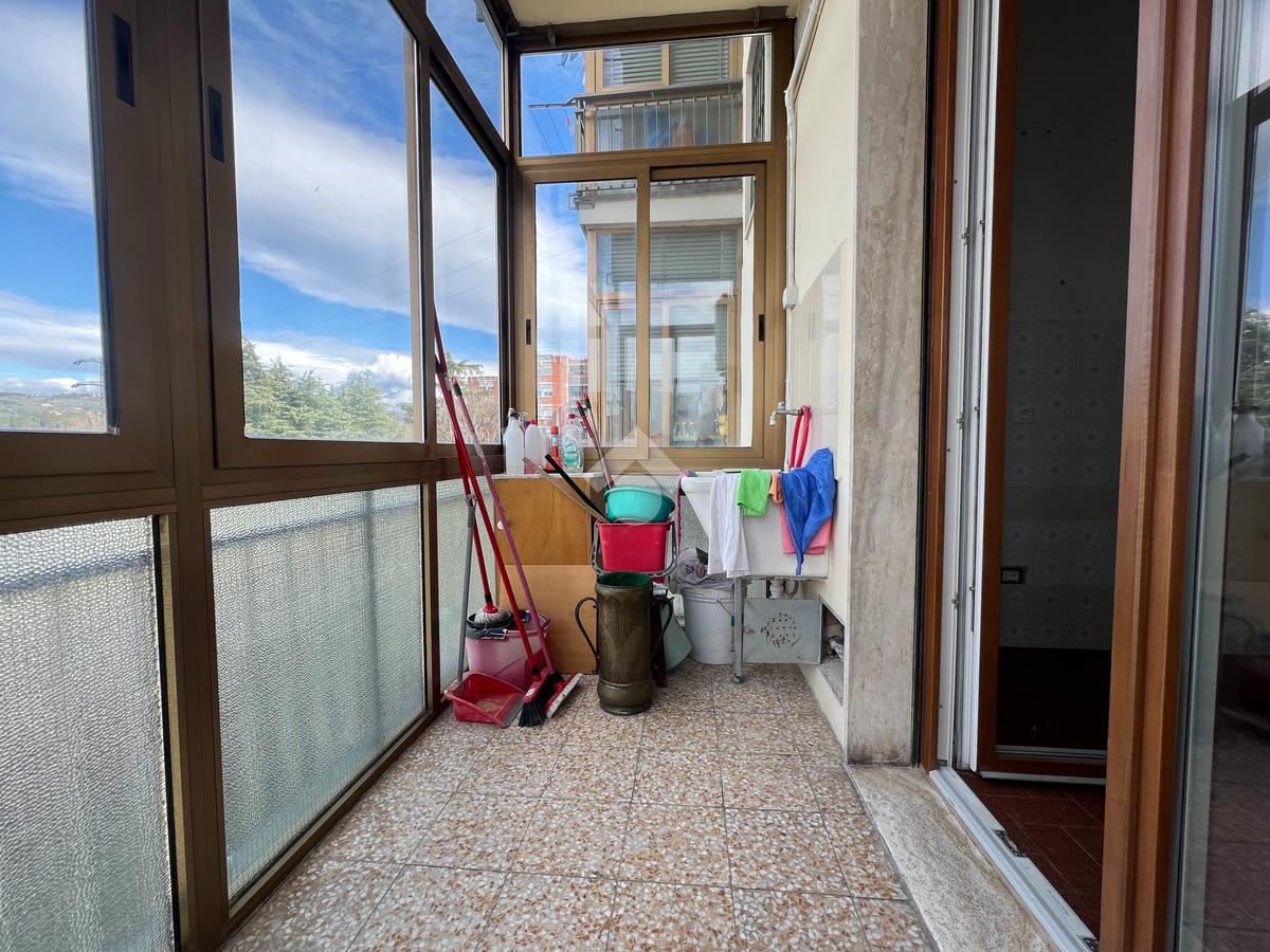 L'immobile si sviluppa come segue: ingresso, sala con accesso ad ampio balcone di 11mq, cucina abitabile con accesso alla veranda, tre camere da letto, due servizi finestrati con doccia, un ripostiglio, oltre a una cantina posta al piano seminterrato.