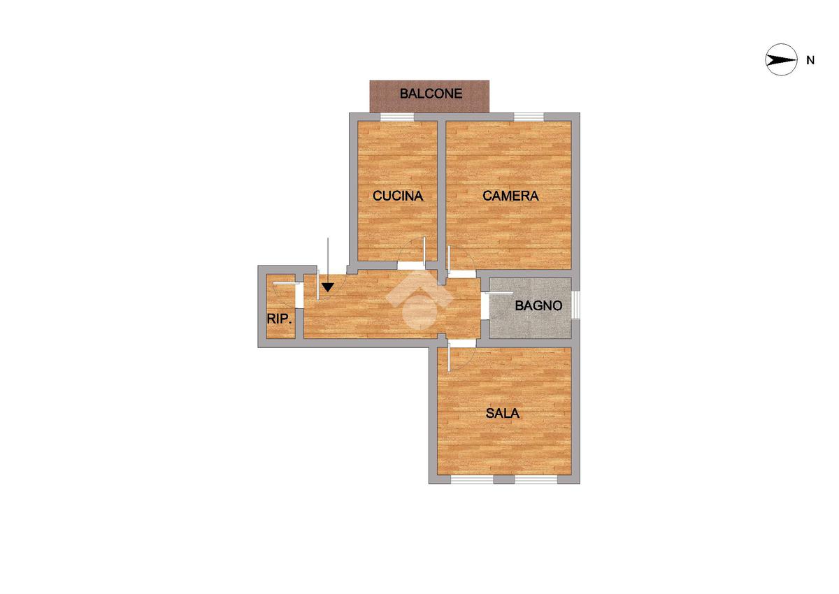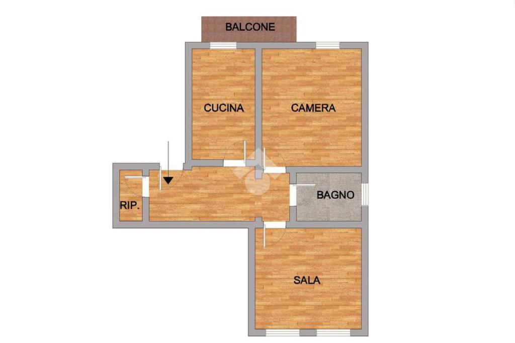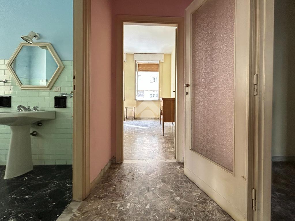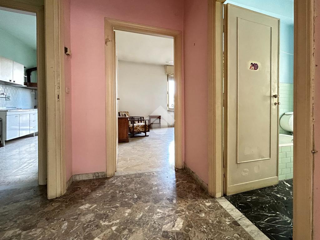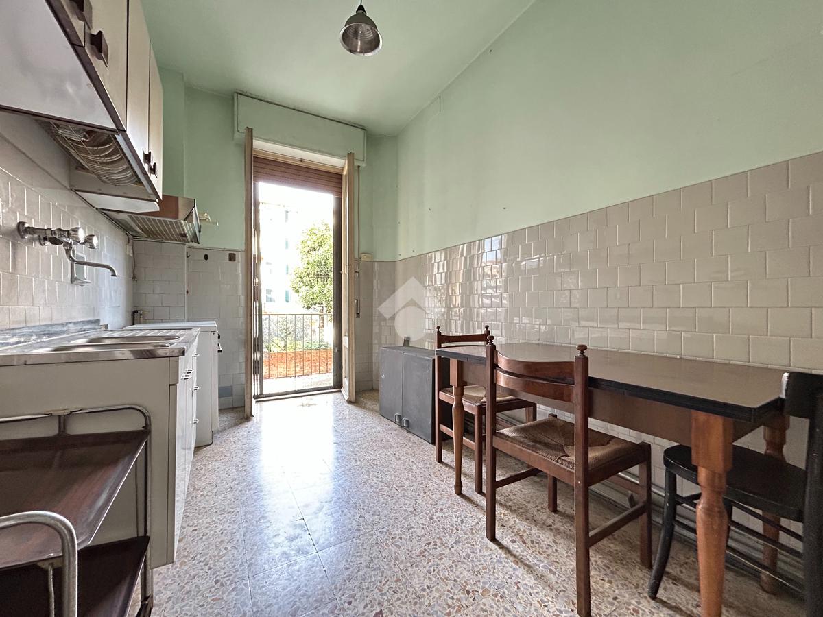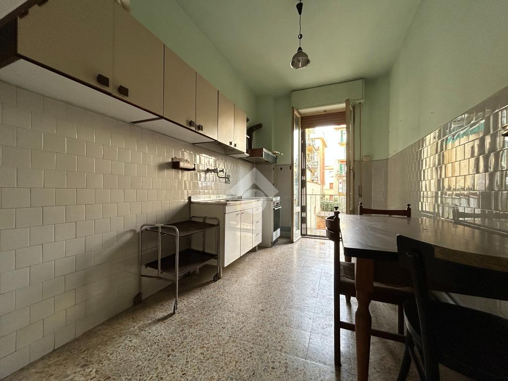 L'appartamento, dotato di tripla esposizione, è composto da ingresso, cucina abitabile con balcone, camera matrimoniale, sala con due finestre, ampio servizio finestrato e ripostiglio.